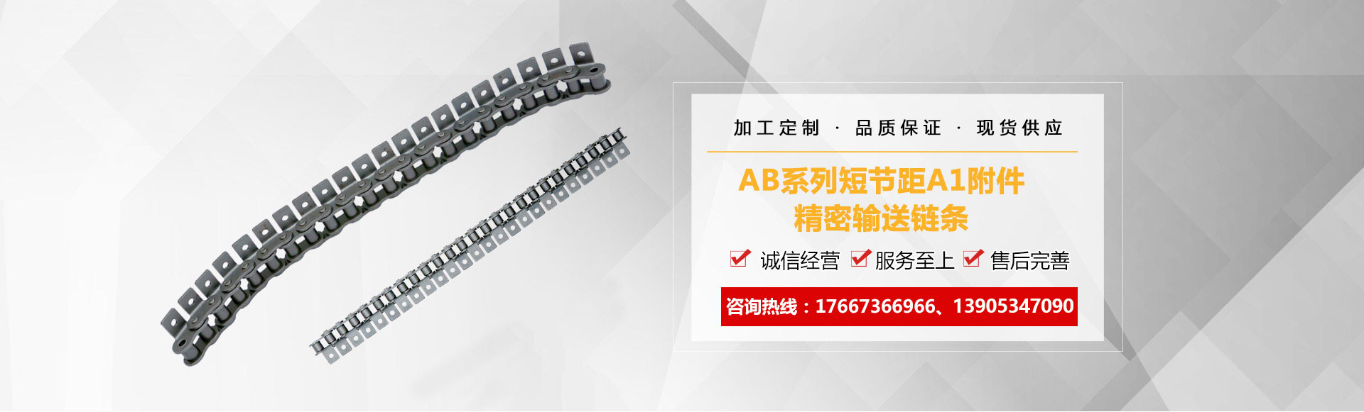 1、鏈條產(chǎn)品有各種不銹鋼、碳鋼輸送鏈條、雙節(jié)距輸送鏈條、空心銷(xiāo)軸鏈條、不銹鋼塑料平頂鏈、不銹鋼精密滾子鏈、特殊工礦輸送鏈、耐高溫輸送鏈條、非標(biāo)鏈條、彎板非標(biāo)鏈條、大節(jié)距輸送鏈條、各種鏈條用滾子(材質(zhì)碳鋼、不銹鋼)等。